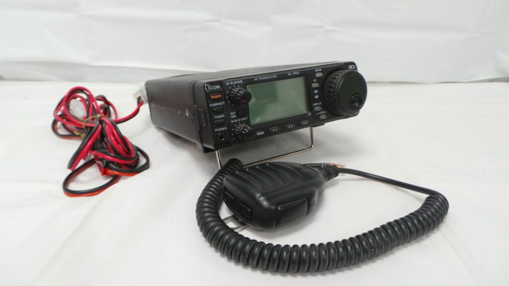 User experience is further enhanced by an intuitive menu system that customises various operational aspects. The IC-703 Plus supports advanced features such as an IF shift, an AF speech compressor, a spectrum scope, and an SWR analyser, making it a versatile tool for amateur radio enthusiasts. The transceiver also supports four types of scanning, ensuring that users can efficiently monitor their desired frequencies. The transceiver includes essential accessories such as the OPC-1229 DC power cable, spare fuses, key plugs, an accessory cable, and the HM-103 hand microphone.