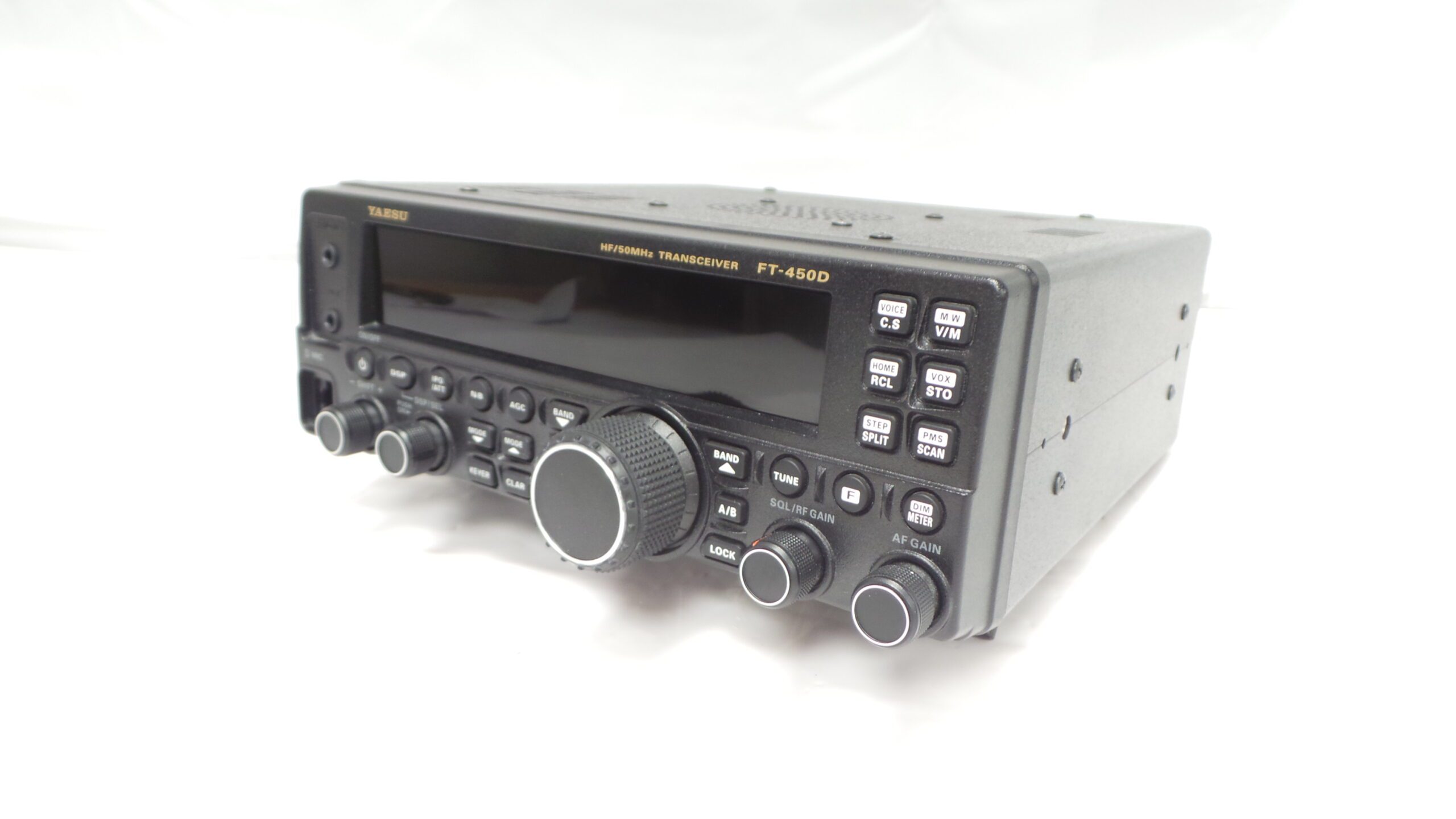 Equipped with a range of features, the FT-450D includes an MH-31A8J hand microphone and DC power cord, requiring 13.8 VDC at 22 amps for operation. Some notable features of this transceiver are the 400 MHz built-in IF DSP technology, electronic keyed, LCD multi-function display, bar-graph metering, and a built-in TCXO with ±1 PPM/hour accuracy. It also offers AGC selection, clarifier adjustment, and a dedicated data jack for FSK-RTTY operation, catering to the needs of amateur radio operators.